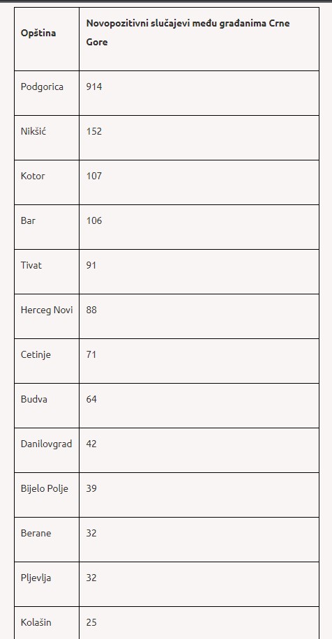 Od početka epidemijskih dešavanja (mart 2020. godine) ukupan broj registrovanih slučajeva infekcije novim korona virusom u Crnoj Gori je 171 873.