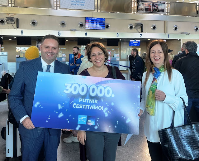 Tim povodom vršiteljka dužnosti izvršne direktorice Air Montenegra, Dragan Frantov Nikolić i član Odbora direktora Orhan Hodžić, danas su na podgoričkom aerodoromu obradovali tristohiljaditu putnicu dok se čekirala za let iz Podgorice za Ljubljanu.