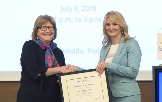 Decenijski rad AmCham-a pohvalila je ambasadorka Sjedinjenih Američkih Država u Crnoj Gori Margaret Uehara, koja je istakla da je AmCham snaga pozitivnog ekonomskog rasta u Crnoj Gori.