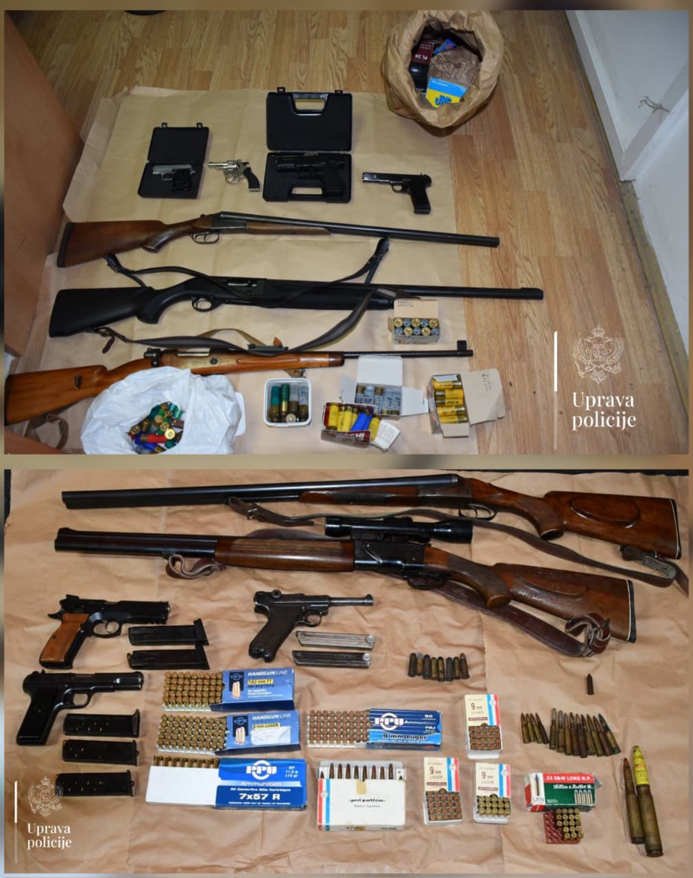 Policija je u Andrijevici pretresom kuće lica R.M. (54) pronašla i oduzela: pištolj marke Luger, lovački karabin marke Crvena Zastava sa optičkim nišanom, pušku marke Carcano i 51 komad municije, sve u ilegalnom posjedu.