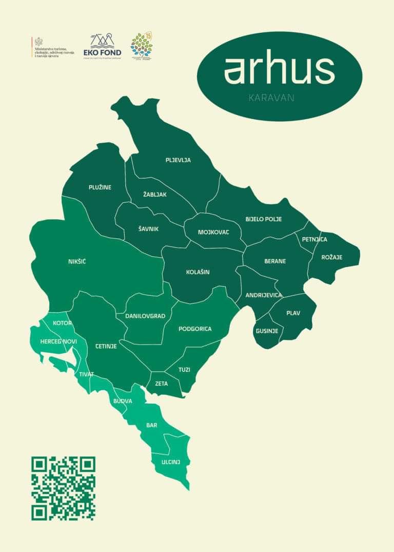 Arhus karavan pokrenulo je MERT, u saradnji sa Eko fondom, Agencijom za zaštitu životne sredine i Arhus centrima iz Podgorice, Berana, Nikšića i Kolašina.