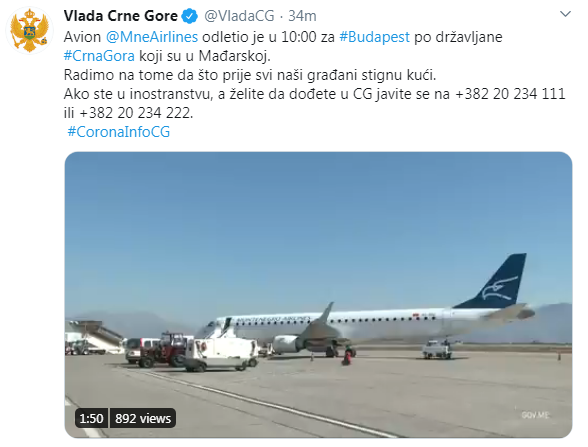 “Radimo na tome da što prije svi naši građani stignu kući,” navodi se na Twiteru Vlade Crne Gore.