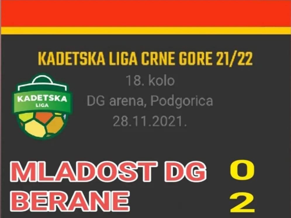 U osamnaestom kolu kadetske lige Crne Gore na DG Areni u Podgorici sastali su se domaćin Mladost DG i FK Berane.
