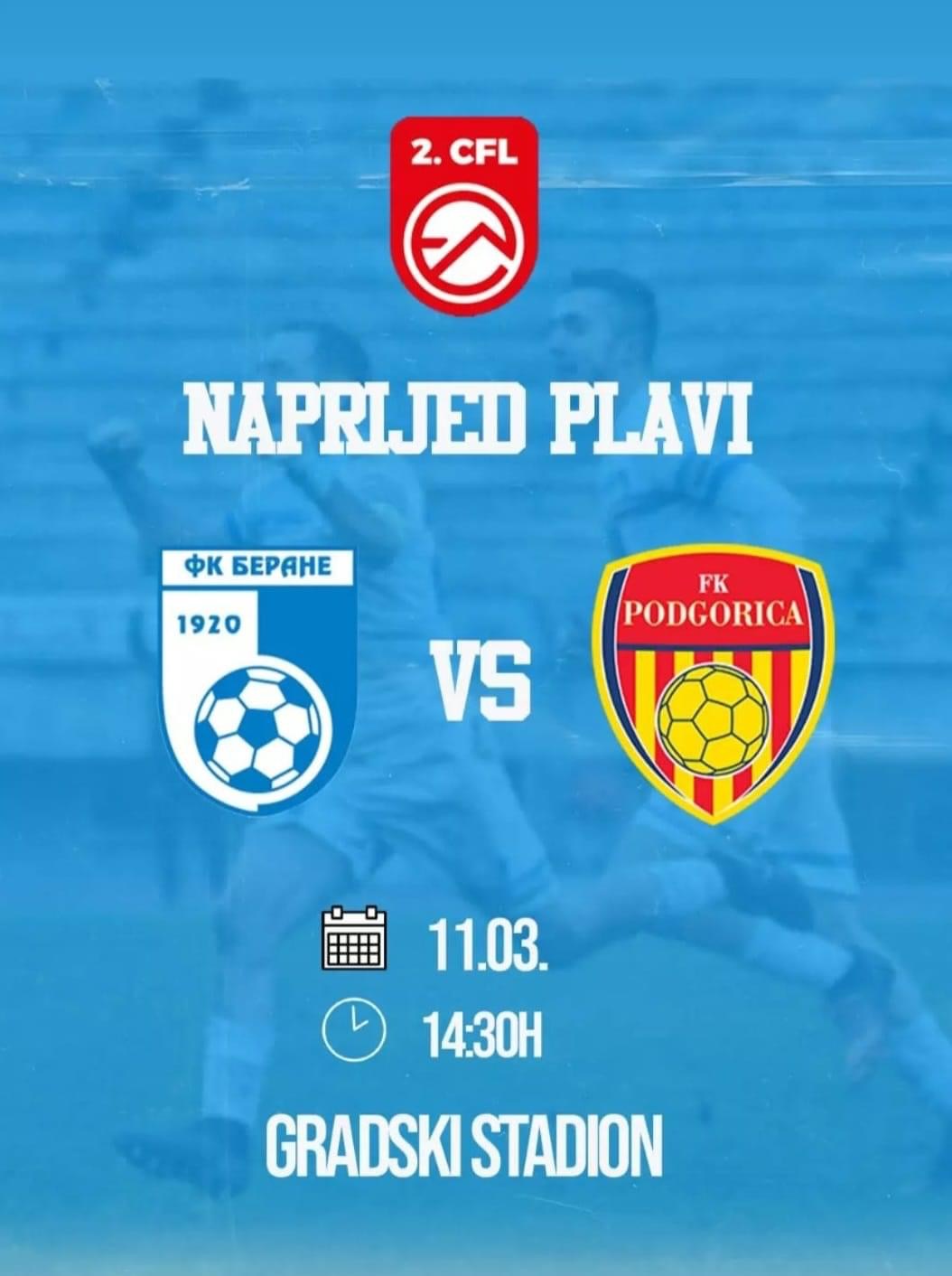 Utakmica je zakazana za subotu 11. marta u 14:30 časova na gradskom stadionu u Beranama.