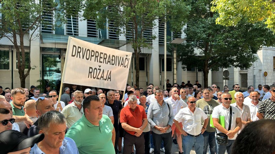 Protest ispred Vlade Crne Gore organizovali su mali drvoprerađivači iz Rožaja i Berana i tom prilikom tražili poništavanje tendera Uprave za gazdovanje šumama i lovištima za redovnu sječu i smjenu direktora Uprave, Miloša Rajkovića.