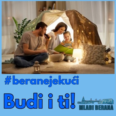 Kako bi upotpunili svoje slobodno vrijeme u izolaciji na malo kreativniji i drugačiji način, pridružite nam se i podijelite aktivnosti sa nama. Sve što trebate da uradite jeste da nam pošaljete vaše fotografije i video snimke kako i na koji način ispunjavate svoje vrijeme u izolaciji. S obzirom da svi karantin provodimo i doživljavamo na drugačiji način, ovo je prava prilika da međusobno podijelimo pregršt različitih ideja. Slike i video snimke koje odlučite da podijelite sa nama, postavime na svom instagramu uz hešteg #Beranejekući i tag @mladiberana.