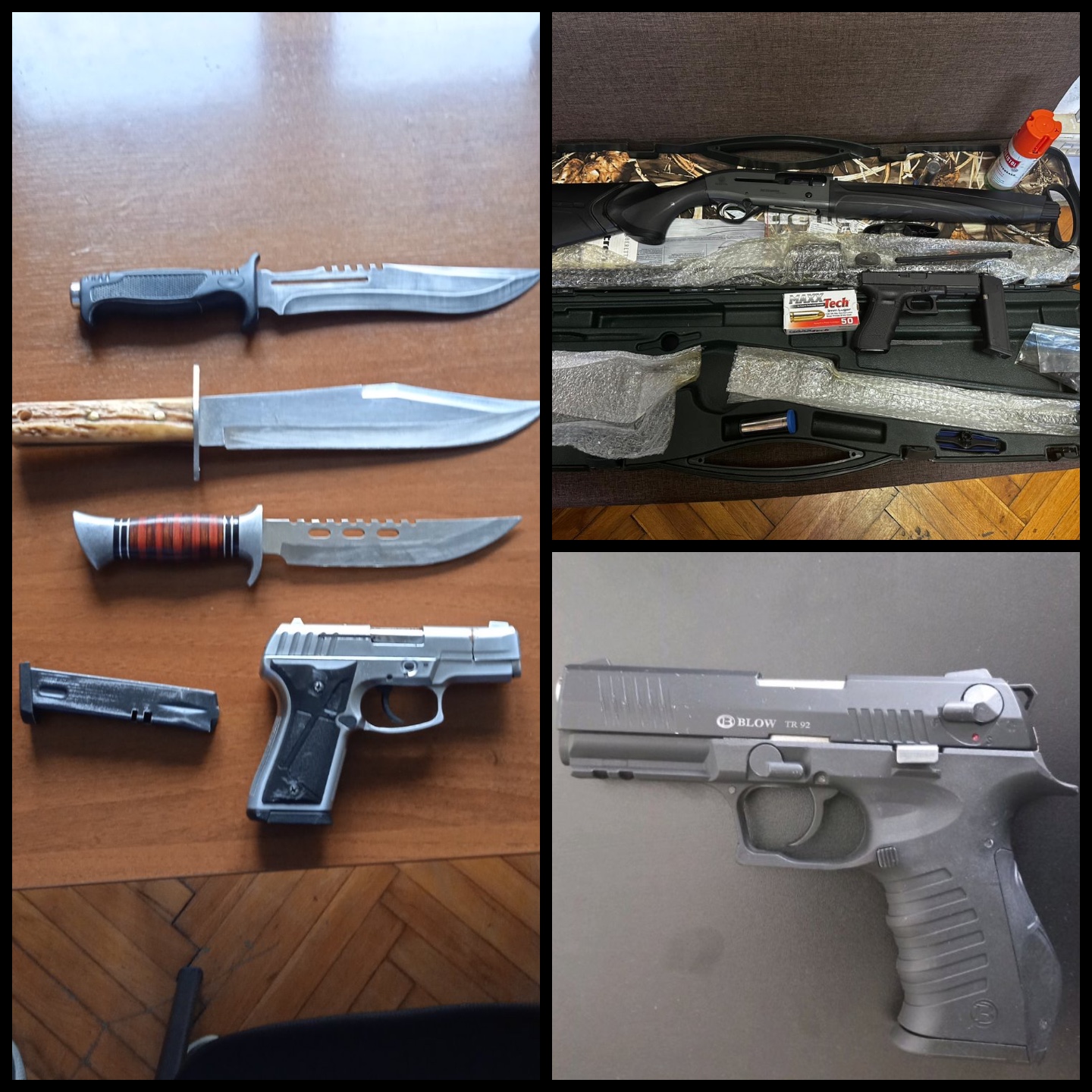 Nakon verbalnog sukoba koji se dogodio između J.Š. i R.Ž., koji je kod J.Š. izazvao osjećaj ugroženosti, policijski službenici su izvršili pretrese prostorija koje ova lica koriste i od R.Ž. oduzeli gasni pištolj, kao i tri noža, dok su od J.Š. oduzeli lovačku pušku, pištolj Glock kalibra 9 mm – luger i 50 komada municije kalibra 9 mm.