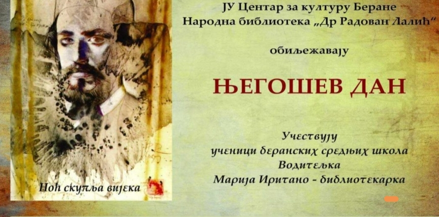 Njegošev dan, crnogorski praznik kulture, JU Centar za kulturu Berane i Narodna biblioteka “Dr Radovan Lalić” ove godine obilježiće podsjećanjem na čuvenu Njegoševu pjesmu “Noć skuplja vijeka“.