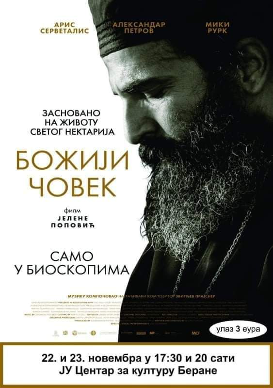 JU Centar za kulturu Berane prikazuje film “Božiji Čovek”. Ovaj film zasnovan je na životu svetog Nektarija.