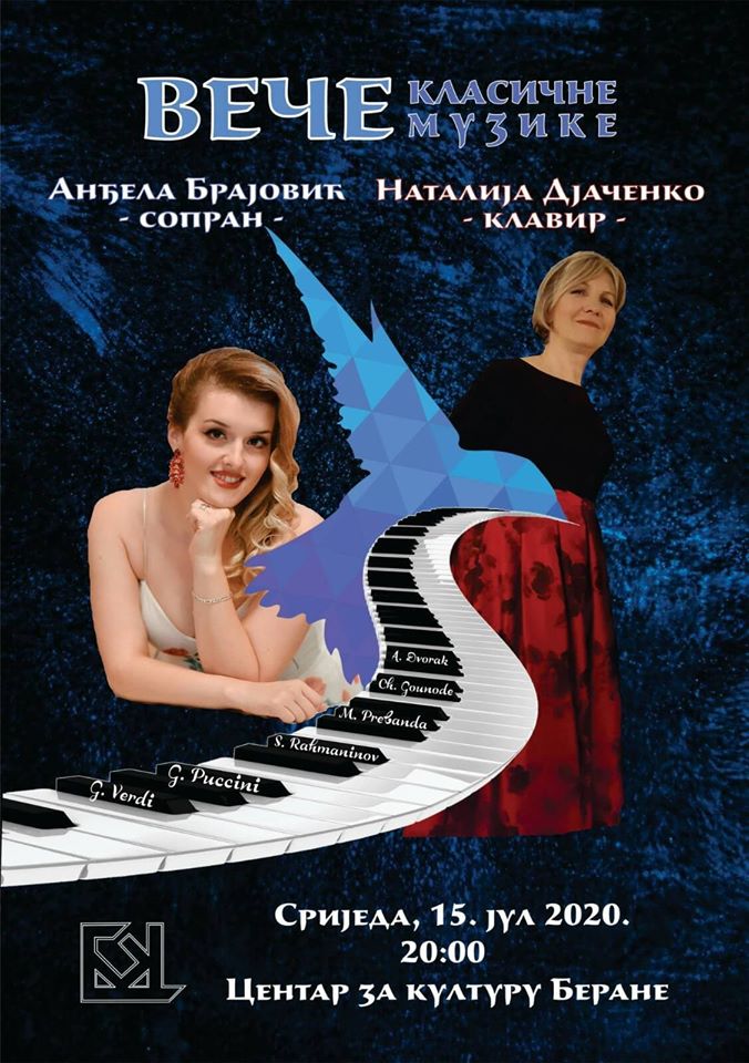 U okviru Beranskog kulturnog ljeta, koncert klasične muzike, zakazan za srijedu, 15. 07. 2020. godine, održaće se bez prisustva publike, a vi ga možete pratiti od narednog dana na jutjubu i fejsbuk stranici Centra za kulturu Berane, koji je i organizator ovog programa, javljaju iz Centra za kulturu.