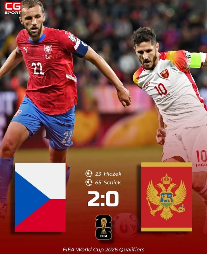 Golovima Hložeka u 23. i Černija u 65. minutu Češka je u trećem kolu kvalifikacija pobijedila Crnu Goru sa 2:0, koja je odigrala ponovo bezidejno i taktički loše.
