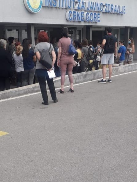 E ogromna gužva ispred Instituta za javno zdravlje Crne Gore, sve to bez distance i reda potvrđuje da se kod doktora ne može proći bez guže.