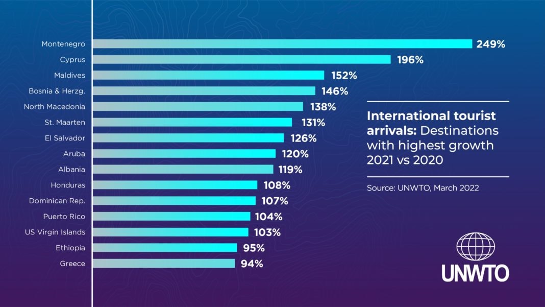 Iz UNWTO-a su kazali da su Crna Gora, Kipar i Maldivi prednjačili rast u prošloj godini u odnosu na 2020.