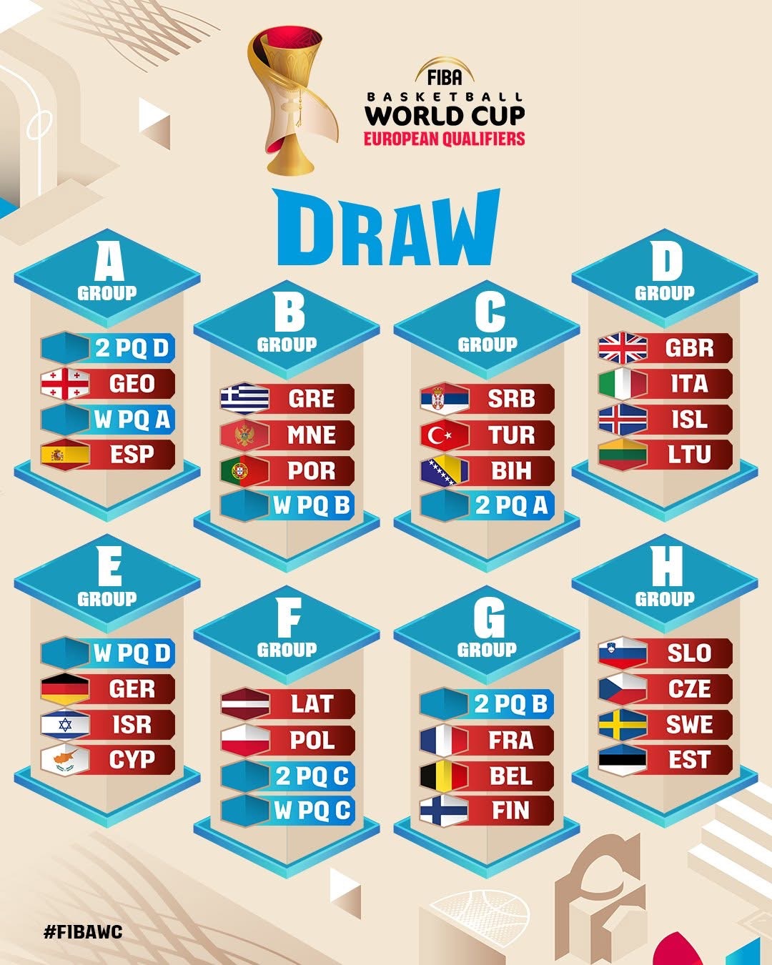 U grupi C su Srbija, Turska, BiH i jedan tim iz pretkvalifikacija, u D grupi su Velika Britanija, Italija, Island, Litvanija, u grupi E su Njemačka, Izrael, Kipar i jedan tim iz pretkvalifikacija, u grupi F su dva tima iz pretkvalifikacija, Letonija i Poljska, u grupi G Francuska, Belgija, Finska i jedan tim iz pretkvalifikacija, dok grupu H čine Slovenija, Češka, Švedska, Estonija.