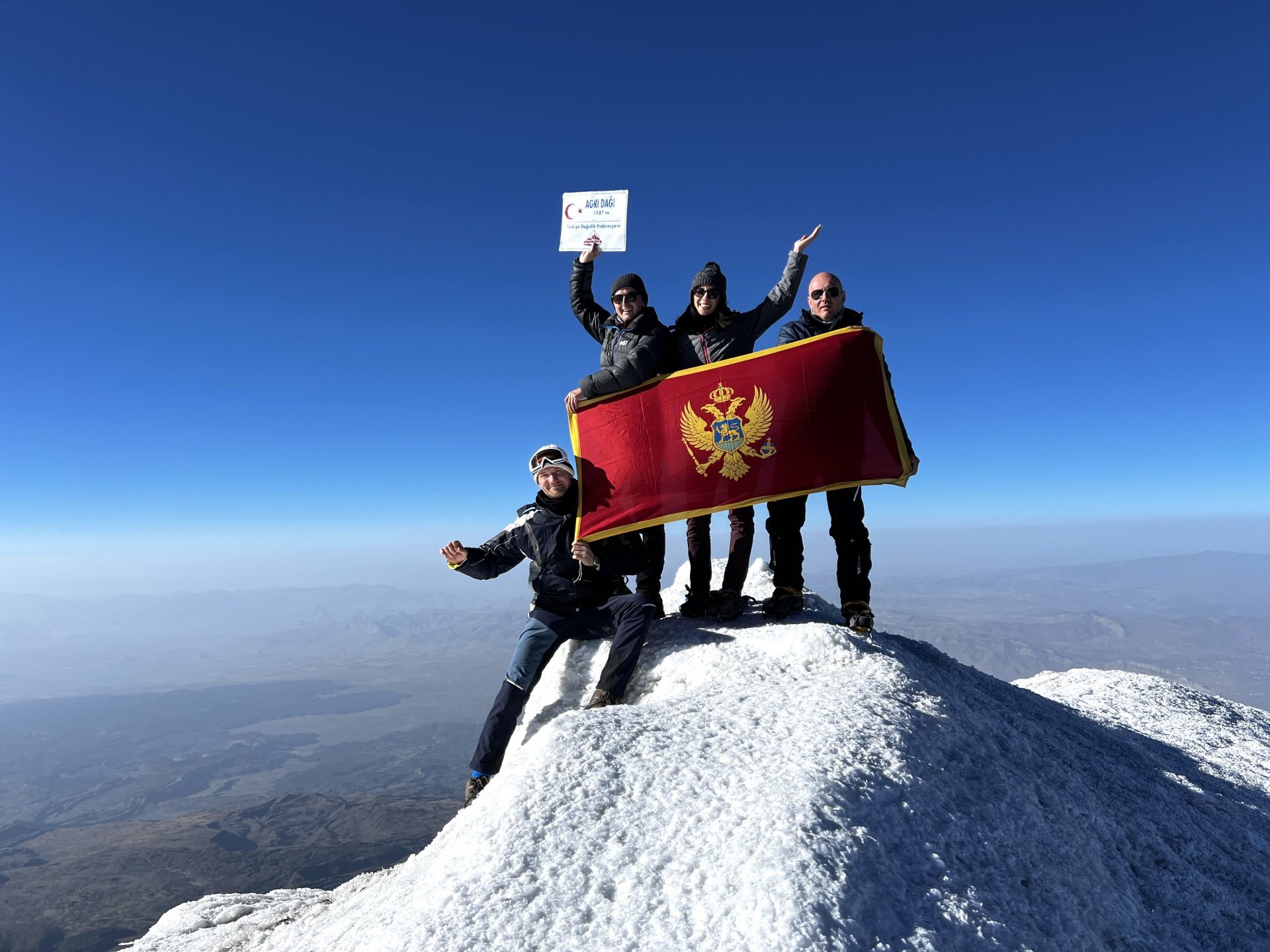 Najviši vrh Turske, Ararat, koji se uzdiže na impresivnih 5.137 metara nadmorske visine, osvojen je od članova Sportskog planinarskog kluba „Soko“ sa Cetinja koji su danas uspješno izvršili ovaj veličanstven i težak uspon.