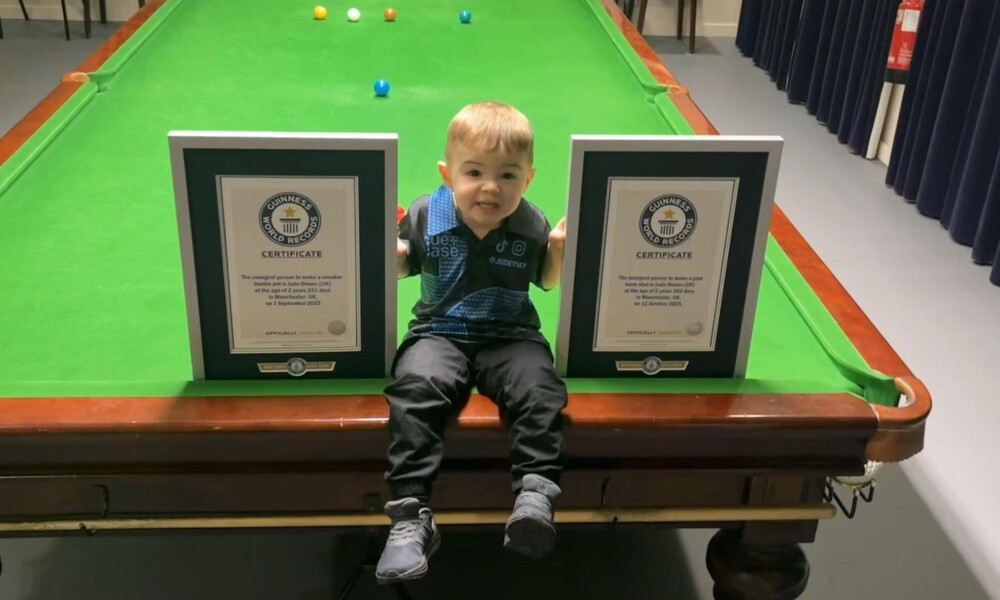 Dječak iz Mančestera ušao je ove godine u Ginisovu knjigu rekorda jer je u oktobru prošle godine, u uzrastu od samo dvije godine i 302 dana, izveo dva trik kružna poteza u snukeru, prenijeli su britanski mediji.