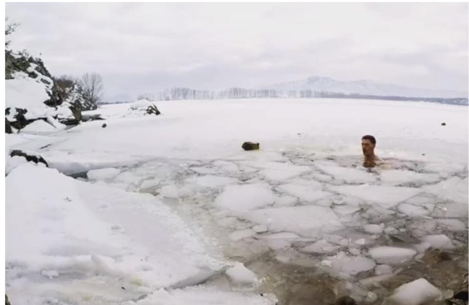Student Fakulteta za sport i fizičko vaspitanje u Nikšiću , Ivan Kovačević (22), se oprobao u kupanju u zaleđenom Krupcu, saopštava Rtcg.me.