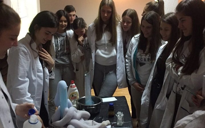 “Učenici razreda III-2, smjer farmaceutski tehničar, izveli su i niz interesantnih ogleda iz hemije: duh iz boce, nevidljivo mastilo, bezbolno vađenje krvi, slonovska pasta za zube, magične boje u mlijeku, plutajući biber, vještački snijeg od pampers pelene”, rekla nam je profesorica hemije, Ivana Kljajić.