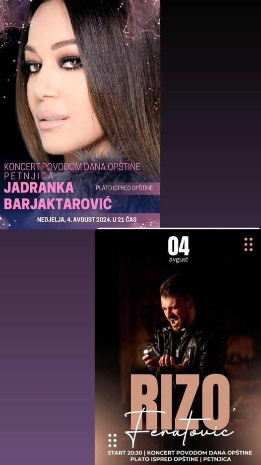Uoči Dana opštine Petnjica, 04. avgusta, turistička organizacija uz podršku Centra za kulturu i prijatelja iz dijaspore organizuje koncert na kojem će nastupiti Jadranka Bajraktarović i Rizo Feratović.