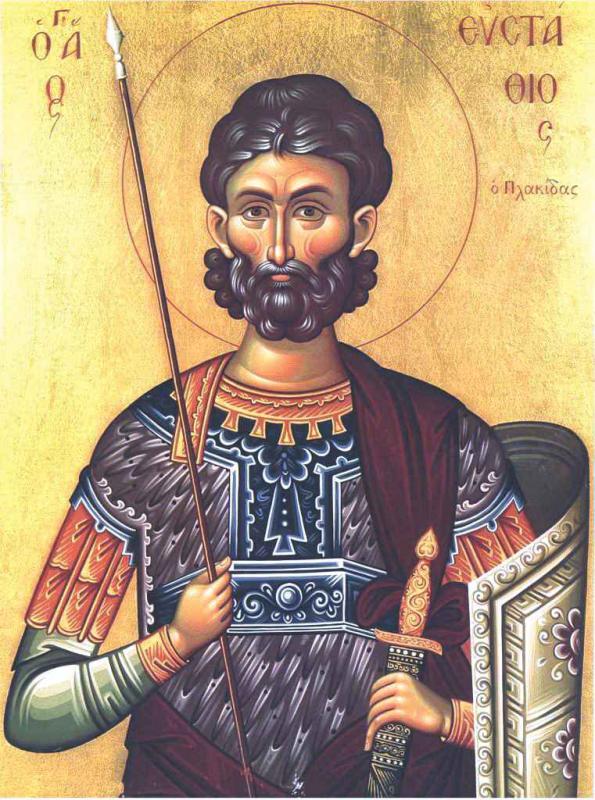 U životopisu Sv. Jevstatija, nalazimo da se u mladosti zvao Plakida, i da je živeo od 70 do 120 godine posle Hristovog rođenja, u Rimu.
