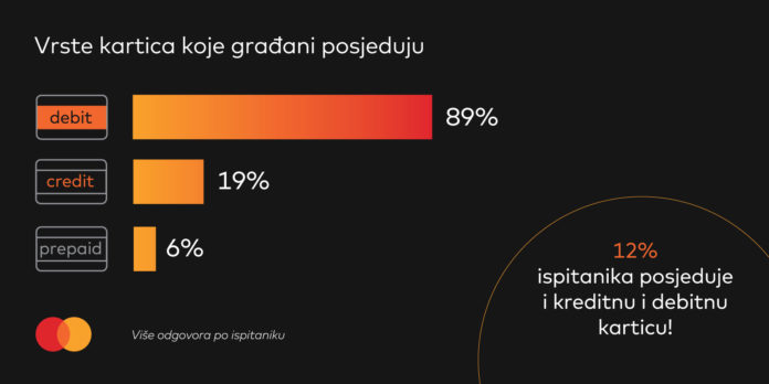 Najnovije MasterIndex istraživanje, treće po redu koje kompanija Mastercard sprovodi u Crnoj Gori, potvrdilo je da 89 odsto ispitanika posjeduje debitnu karticu, 19 odsto kreditnu, dok 12 odsto ispitanika ima i debitnu i kreditnu karticu.