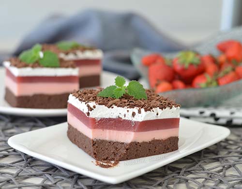 Nepečeni kolač od jagoda veoma je praktičan za pripremu, jer se svaki dio odmah rasporedi u kalupu i nema hlađenja, pa je samim tim veoma brzo gotov.