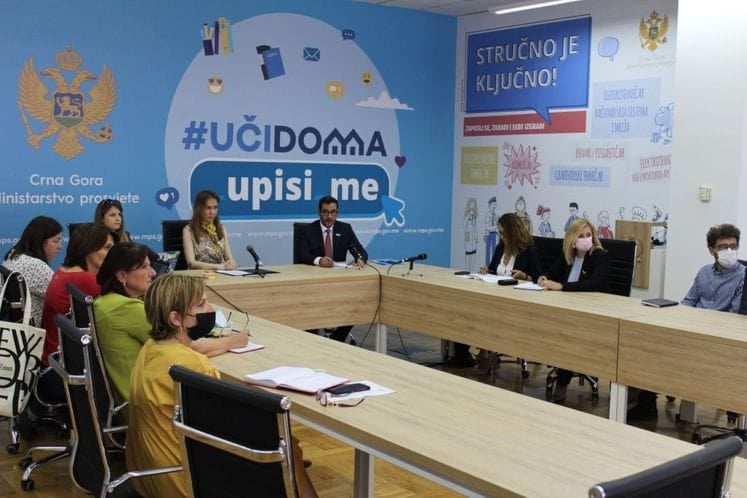 U prostorijama Ministarstva prosvjete, nauke, kulture i sporta juče je održan sastanak o digitalnom obrazovanju i strategiji efikasnije primjene informacionih i komunikacionih tehnologija u školskom sistemu Crne Gore. Sastanku su prisustvovali ministarka prosvjete, nauke, kulture i sporta, prof. dr Vesna Bratić, ministarka javne uprave, digitalnog društva i medija, Tamara Srzentić, šef predstavništva Unicefa u Crnoj Gori, Huan Santander, načelnica Odjeljenja za informaciono-komunikacione tehnologije u Ministarstvu PNKS, Marina Matijević, državna sekretarka Ministarstva javne uprave, digitalnog društva i medija, Marina Banović, direktorica Britanskog savjeta, Vanja Madžgalj, te predstavnici UNDPa, ICT Cortexa, UCGa, OSCE misije u Crnoj Gori kao i predstavnici brojnih drugih organizacija. Moderator sastanka, koji je dijelom održan i onlajn, bio je Marko Vukašinović iz Sektora za međunarodnu saradnju i evropske integracije u Ministarstvu PNKS.