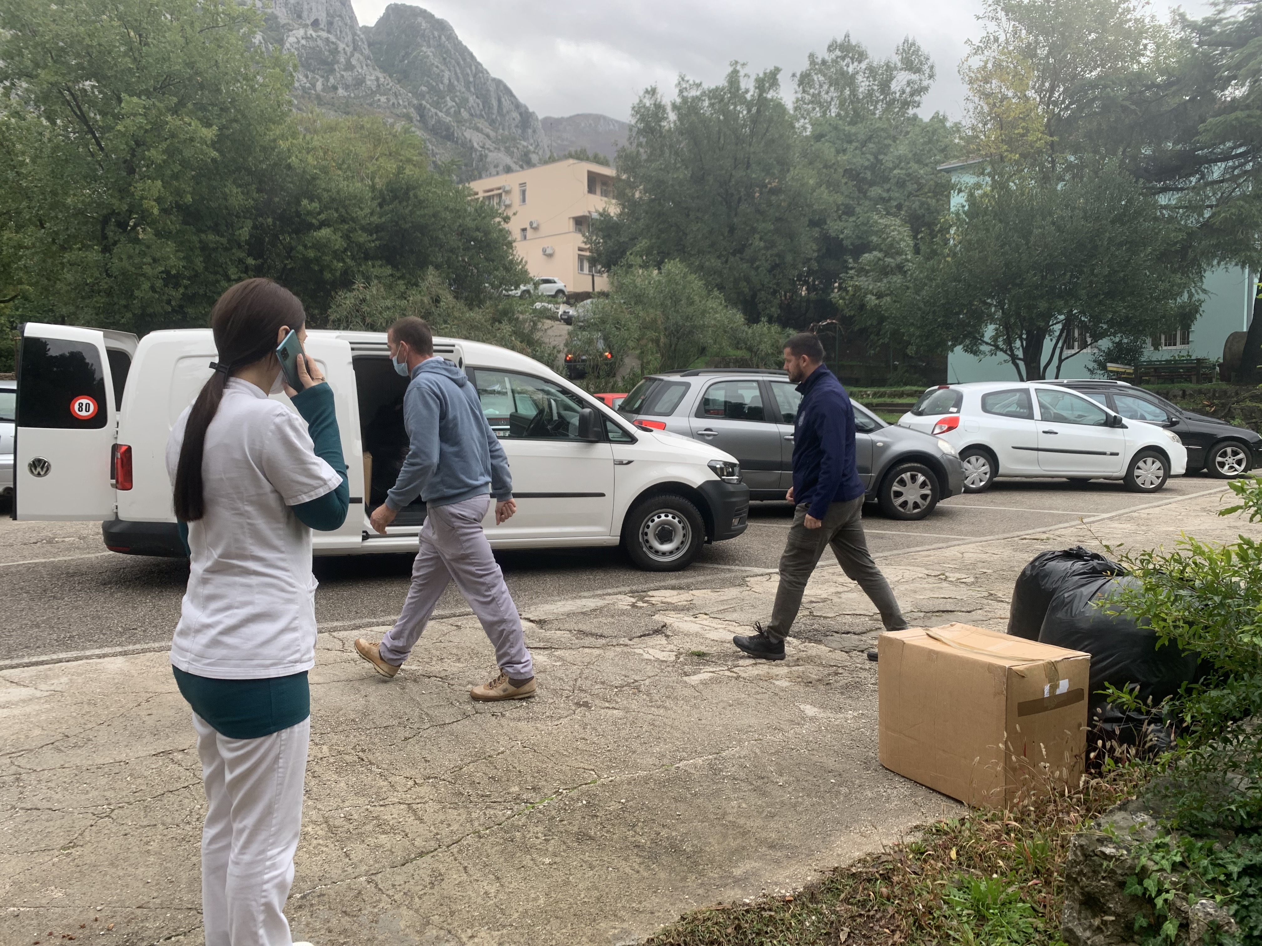 Ispred Bolnice donaciju je primila glavna medicinska sestra Žana Kuč i mr Filip Mihailović, službenik za upravljanje ljudskim resursima i administrativnim