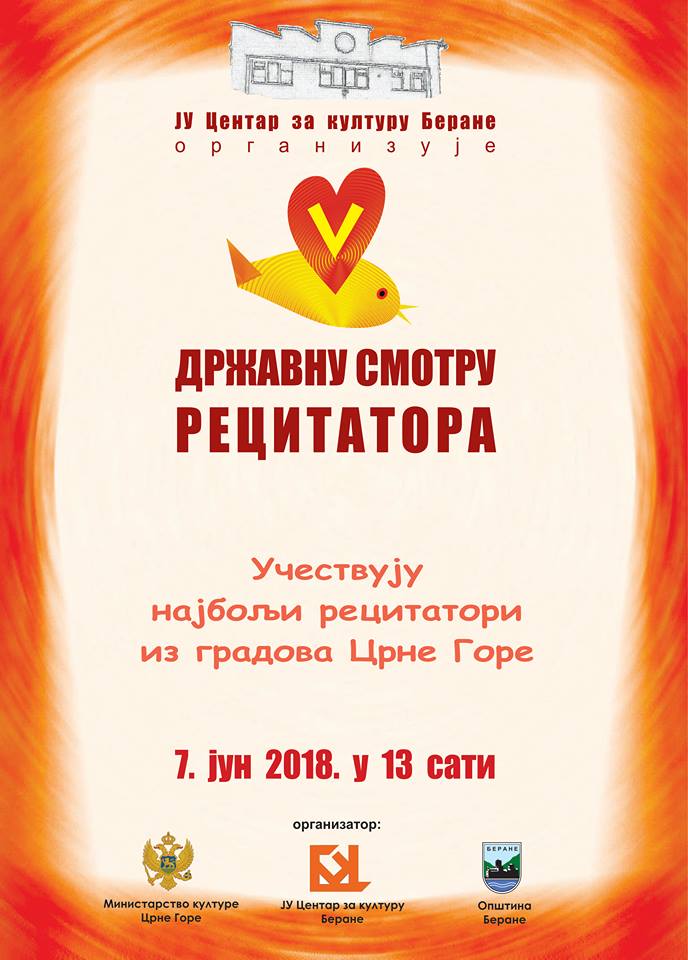 U organizaciji Centra za kulturu Berane, sedmog juna će u ovoj ustanovi biti održana Peta jubilarna Državna smotra recitatora Crne Gore.