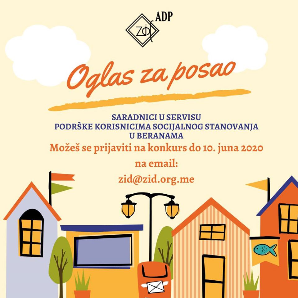 Asocijacija za demokratski prosperitet Zid raspisuje oglas za 2 radna mjesta u Beranama, i to u okviru servisa podrške korisnicima socijalnog stanovanja u Beranama.