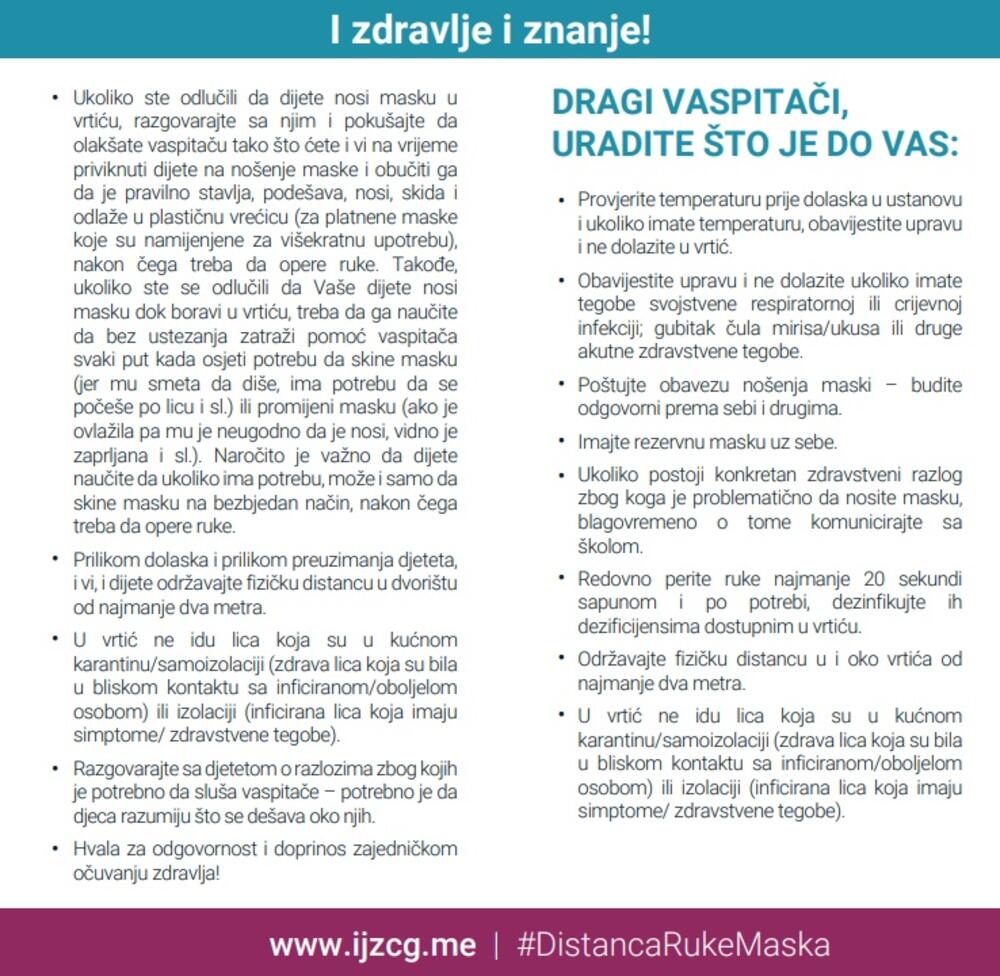 Takođe, Ministarstvo i Institut za javno zdravlje izradili su edukativni flajer za učenike, roditelje i nastavnike u susret školskoj godini.