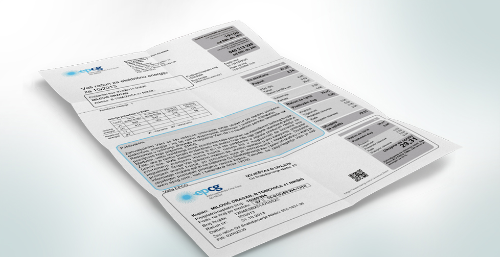Prosječan decembarski račun za električnu energiju za domaćinstva na nivou Crne Gore, ukoliko se izuzmu neočitana mjerna mjesta u objektima koji nijesu stalno nastanjeni, iznosi 41,53 eura, saopšteno je iz Elektroprivrede (EPCG).