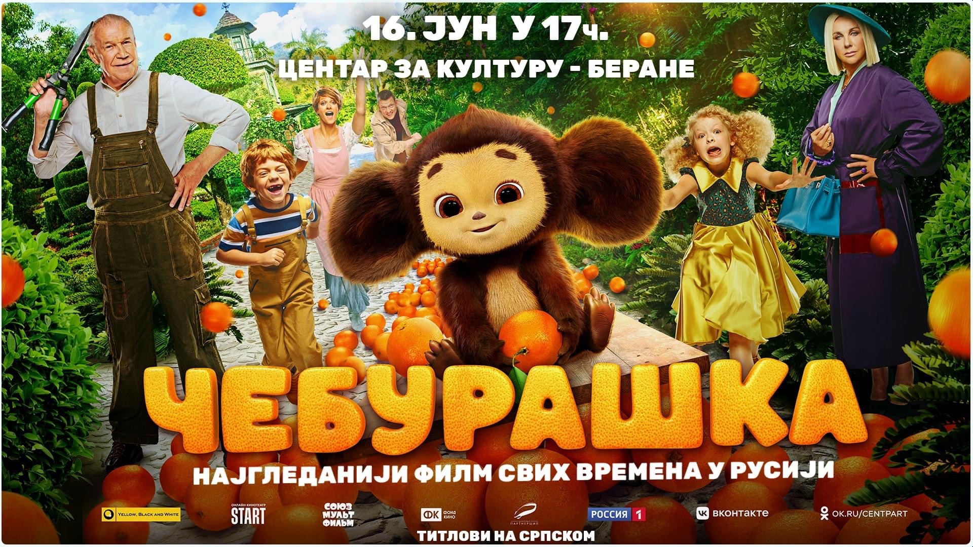 Dječiji animirani film „Čeburaška“ biće prikazan u bioskopu Centra za kulturu u petak, 16.06.2023. godine u 17 časova.