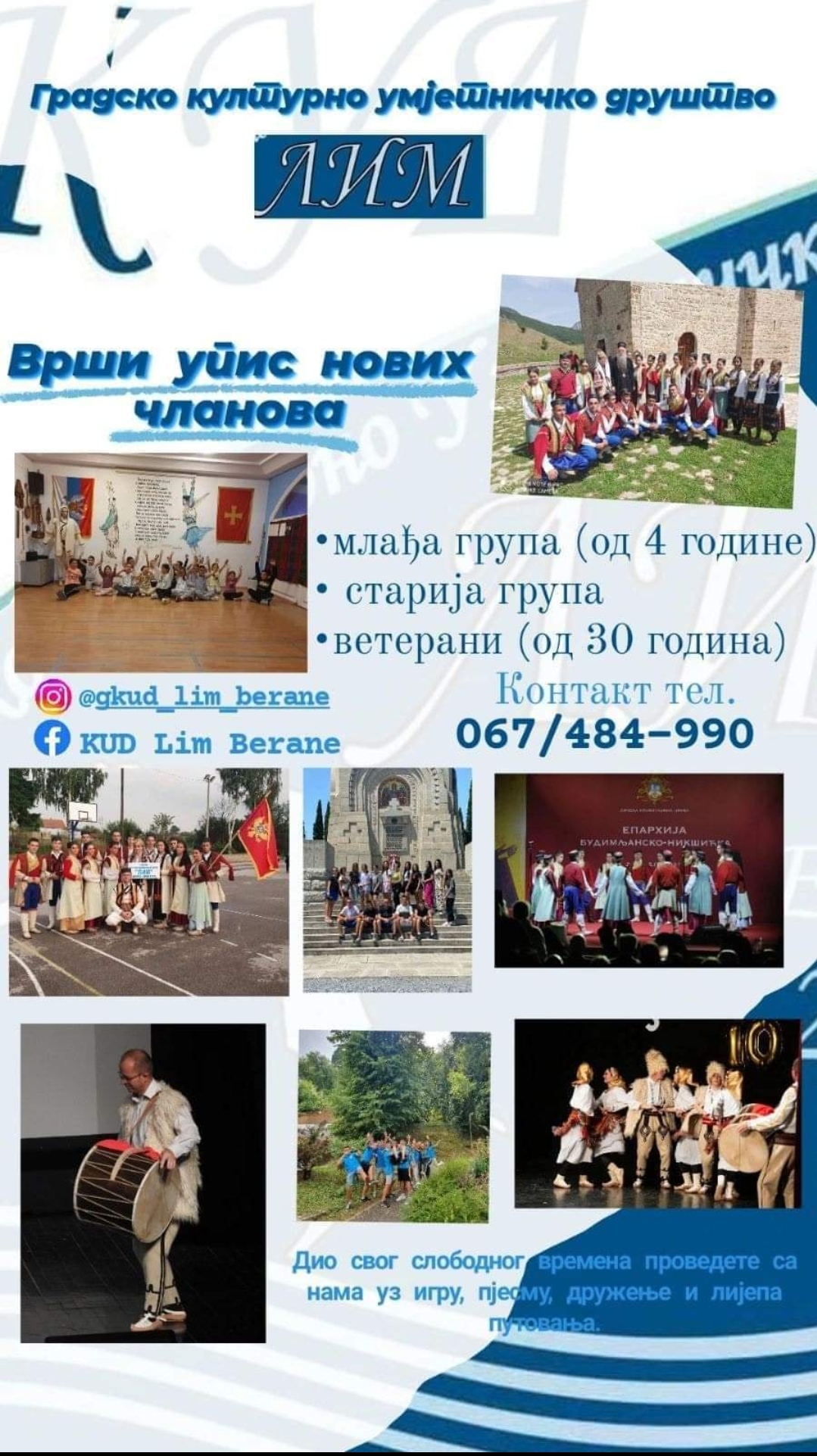 Gradsko kulturno umjetničko društvo “Lim” obavještava mlade i starije građane da je počeo upis novih članova.