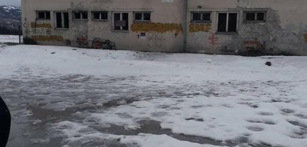 Na zgradi aerokluba Berane pored aerodroma u Beranama ispisani su grafiti mržnje.