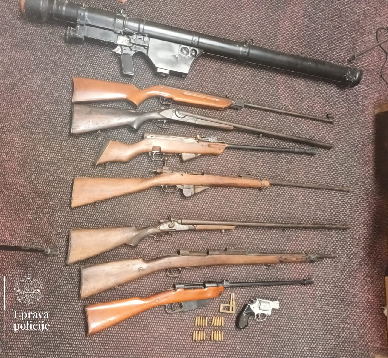 Takođe, službenici u Herceg Novom su, na osnovu pribavljene naredbe suda, izvršili pretres stana i drugih prostorija koje koristi D.B. (58), i tom prilikom kod njega pronašli ručni raketni bacač, sedam pušaka različite marke i kalibra, startni revolver i 22 komada municije različite vrste i kalibra, bez odgovarajuće dokumentacije.