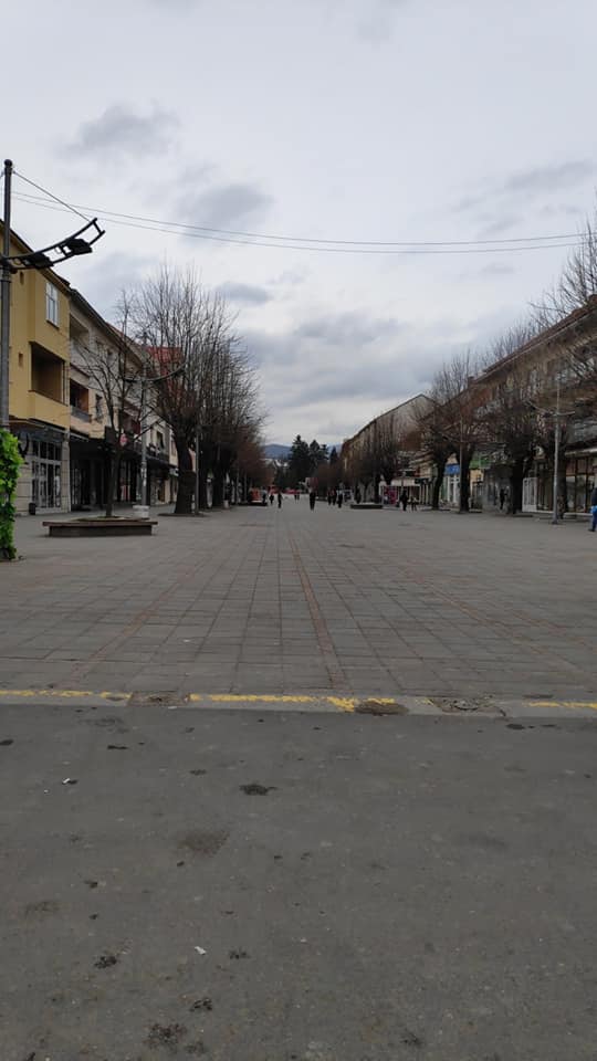 Hladan i oblačan dan u našem gradu. Ulice su prazne, a većina građana se pridržava mjerama zaštite. Mogu se sresti oni koji moraju poći po osnovne namirnice, ali kažu trude se da se ne zadržavaju u radnjama i na ulici.