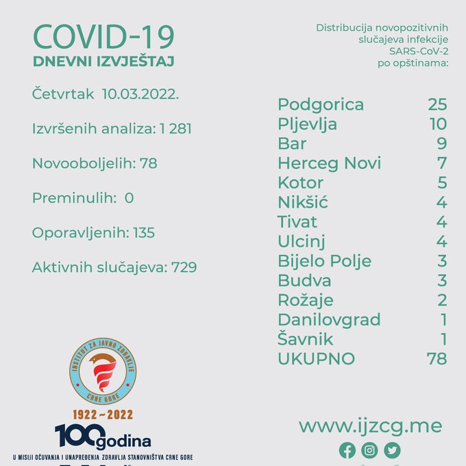 U Crnoj Gori u posljednja 24 sata registrovano je 78 novih slučajeva koronavirusa, saopšteno je iz Instituta za javno zdravlje IJZ.