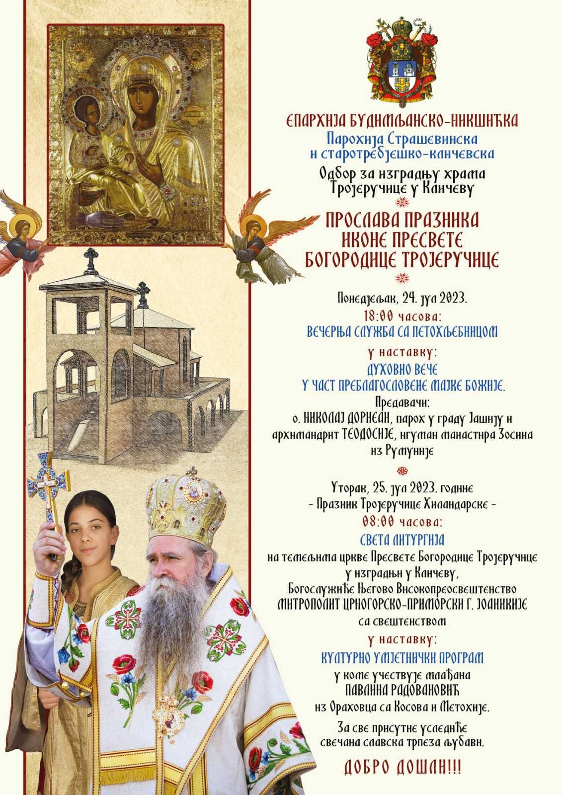 Proslava praznika Ikone Presvete Bogorodice Trojeručice počela je sinoć u nikšićkom naselju Kličevo. Nadležni sveštenik protojerej-stavrofor Velimir Jovović za Portal RTNK je kazao da svečanost počinje u 18 h večernjom službom sa petohljebnicom u nadzemnoj kripti hrama u izgradnji posvećenog Ikoni Presvete Bogorodice Trojeručice u Kličevu.