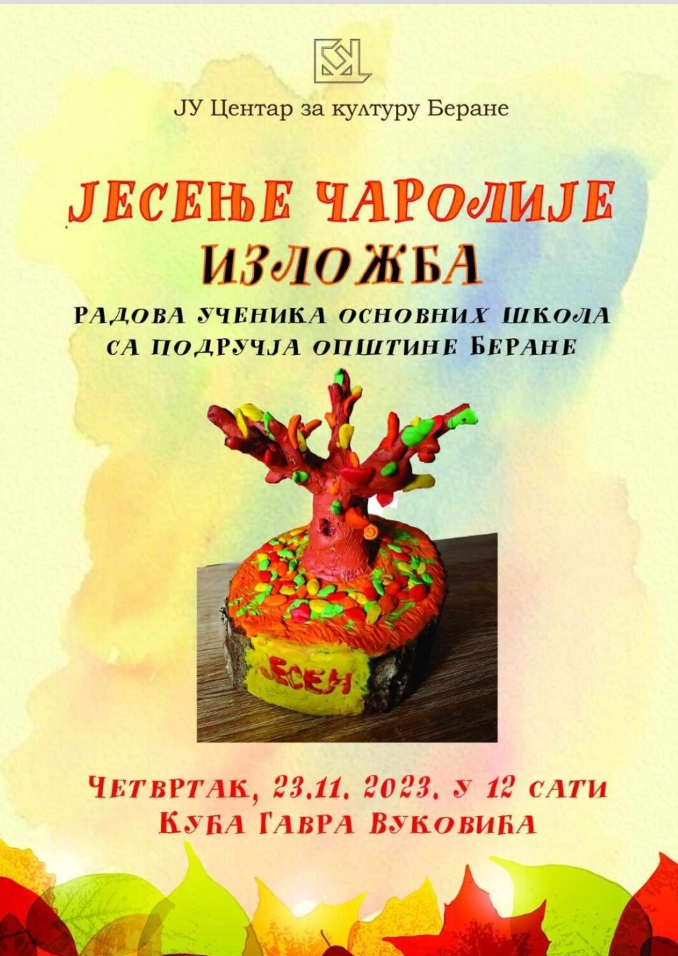 Izložba likovnih radova pod nazivom “Jesenje čarolije”, biće otvorena u Spomen kući vojvode Gavra Vukovića u četvrtak, 23. 11. 2023. godine u 12 časova.
