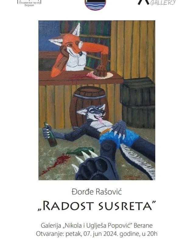 U petak, 7.juna, u galeriji ,,Nikola i Uglješa Popović”, sa početkom u 20h, biće otvorena izložba slika ,,Radost susreta “, autora Đorđa Rašovića. Izložbu će otvoriti potpredsjednik opštine Berane Mladen Premović.