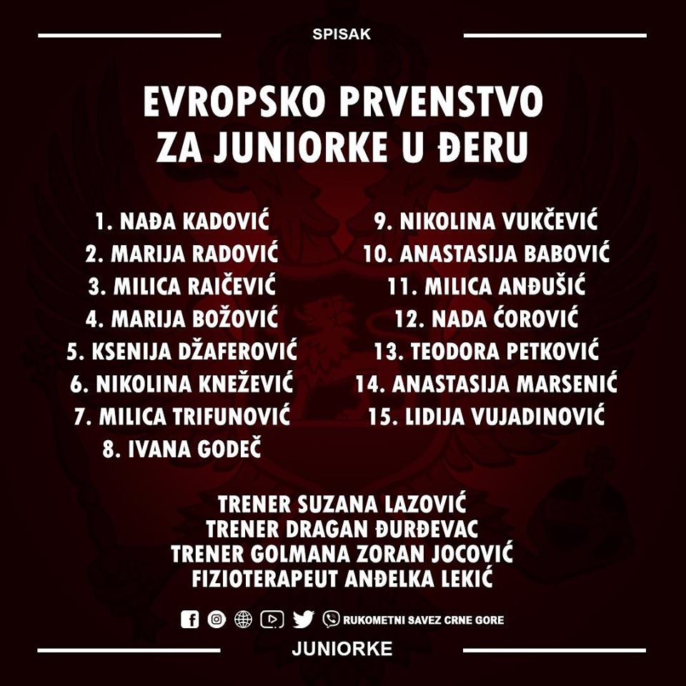 Trener ženske juniorske reprezentacije Suzana Lazović odredila je spisak igračica koje će predstavljati našu državu na Evropskom prvenstvu koje će biti održano u Đeru (Mađarska).