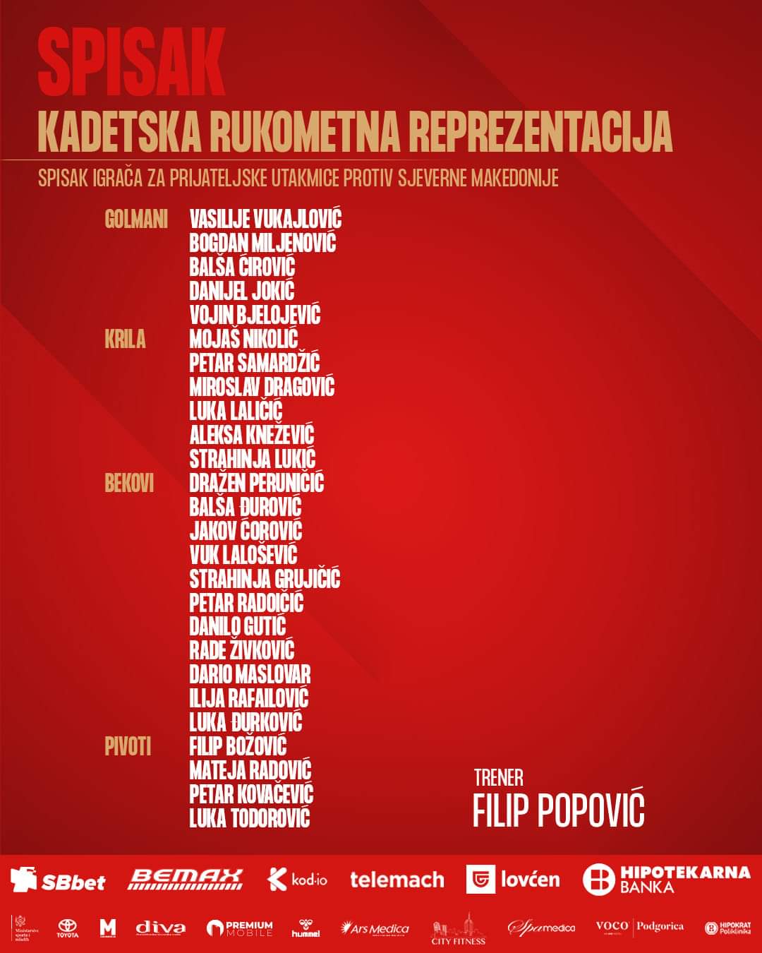 Muška kadetska rukometna reprezentacija Crne Gore odigraće dvije prijateljske utakmice protiv Sjeverne Makedonije, u sklopu EHF sedmice.