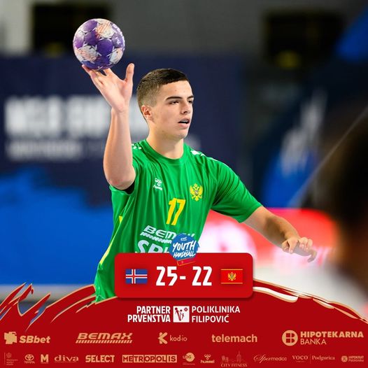 Muška rukometna reprezentacija Crne Gore poražena je od Islanda (25:22) i zauzela je posljednje mjesto u grupi preliminarne runde Evropskog prvenstva za igrače do 18 godina u Podgorici.