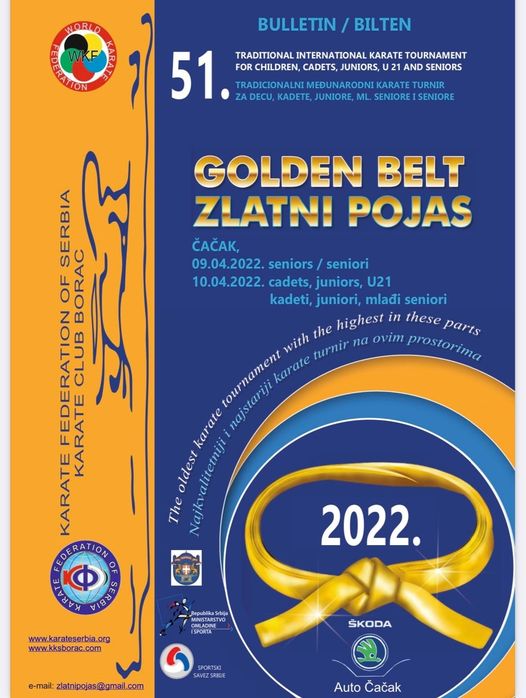 Seniorska karate reprezentacija Crne Gore uzeće učešće na međunarodnom turniru „Zlatni pojas“, koji se održava danas u Čačku.