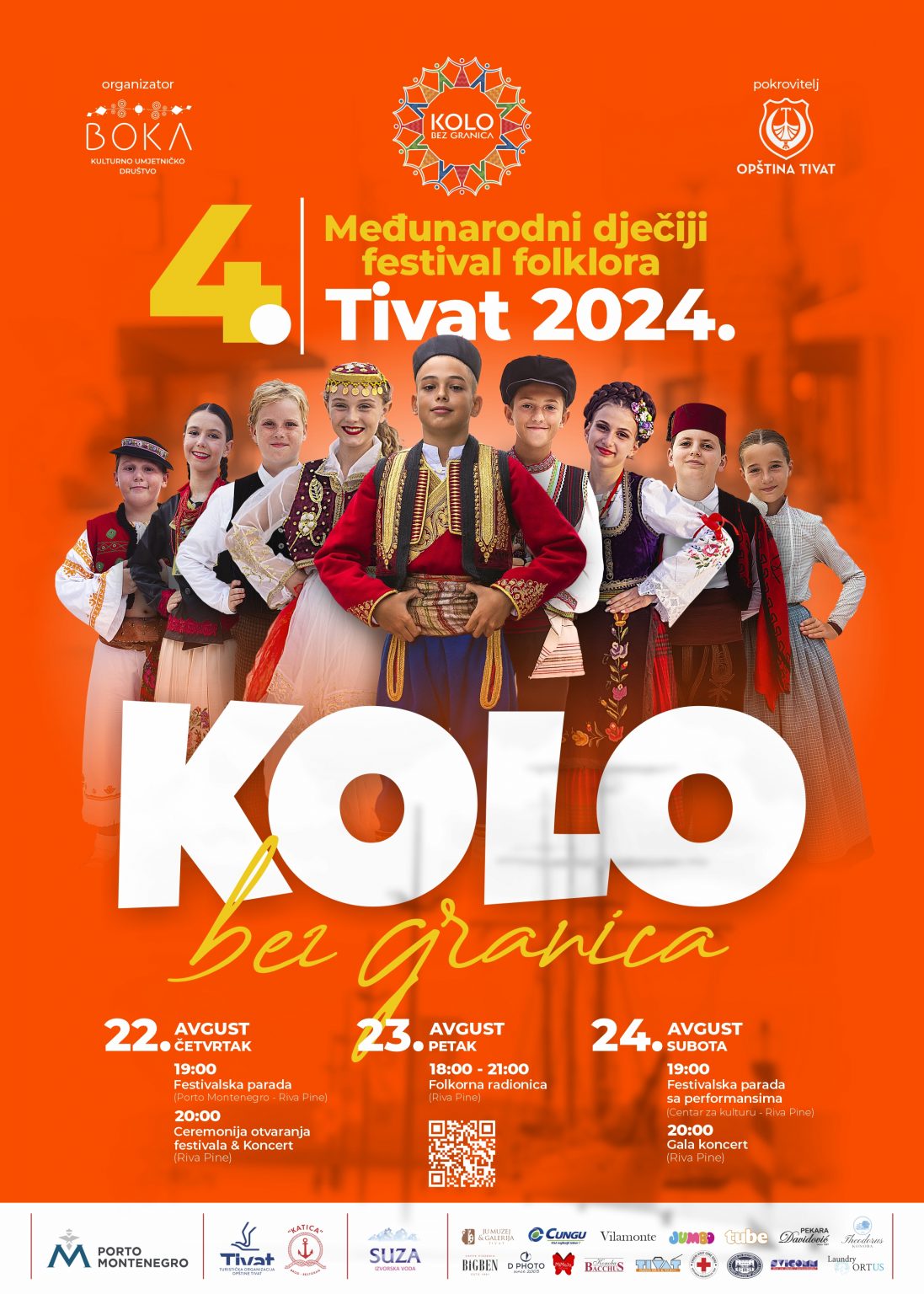 U organizaciji Kulturno-umjetničkog društva Boka biće održan IV IV Međunarodni dječji festival folklora “Kolo bez granica” od 22. do 25. avgusta u Tivtu.