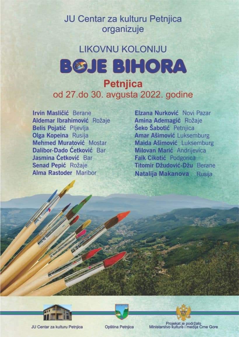JU Centar za kulturu Petnjica u saradnji sa opštinom Petnjica, organizuje koloniju ,,Boje Bihora”, Petnjica. Program počinje 27. i trajaće do 30. avgusta. Projekat je podržalo Ministarstvo kulture i medija Crne Gore. Post navigation Humanitarna akcija školski karavan: Pokloni za učenike iz deset osnovnih škola IJZ: Jedan preminuli pacijent, 325 novooboljih