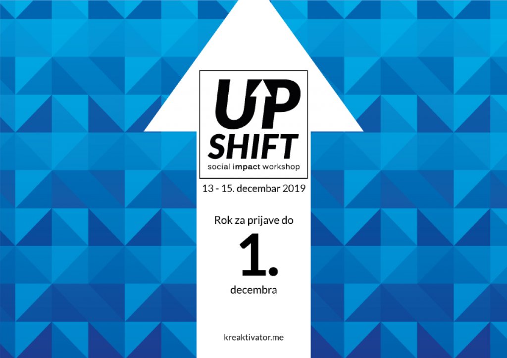 Laboratorija inovacija za mlade “Kreaktivator” već neko vrijeme organizuje intenzivne, trodnevne radionice po cijeloj Crnoj Gori. Za UPSHIFT radionicu, koja će se održati u hotelu Four Points by Sheraton, u Kolašinu, od 13. do 15. decembra, mogu se prijaviti timovi koji čine od tri do pet mladih, od 13 do 19 godina, koji nisu učestvovali na prethodnim UPSHIFT radionicama. Svi troškovi (prevoz, smještaj, hrana) pokriveni su od strane organizatora.