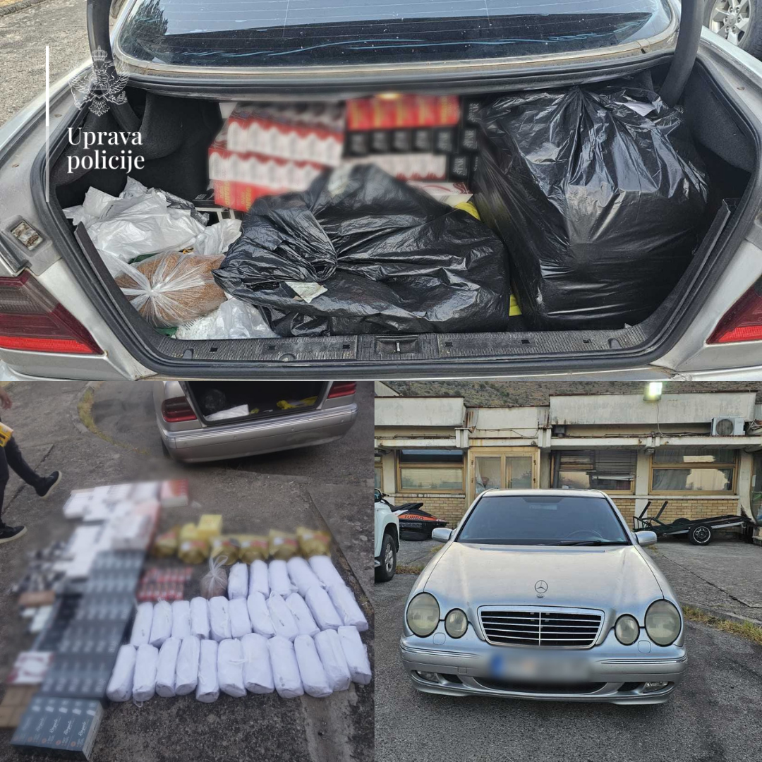 U prtljažniku vozila policijski službenici su pronašli 17 kilograma rezanog duvana, 99 pakovanja filtera za cigarete, 16 mašinica za pravljenje cigareta, devet kutija za duvan, 10 kesica filtera i pet pakovanja kartica za duvan.