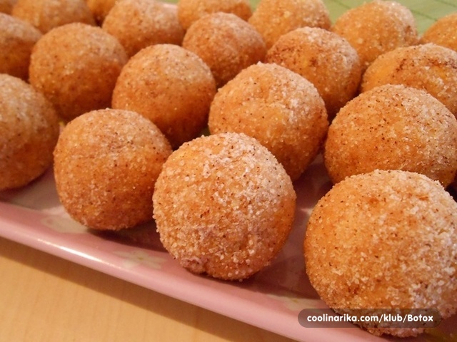 margarin i secer, sa pomorandzom, pa od te smjese rukama praviti kuglice, uvaljati ih u vanilin šećer sa cimetom, i to je to.
